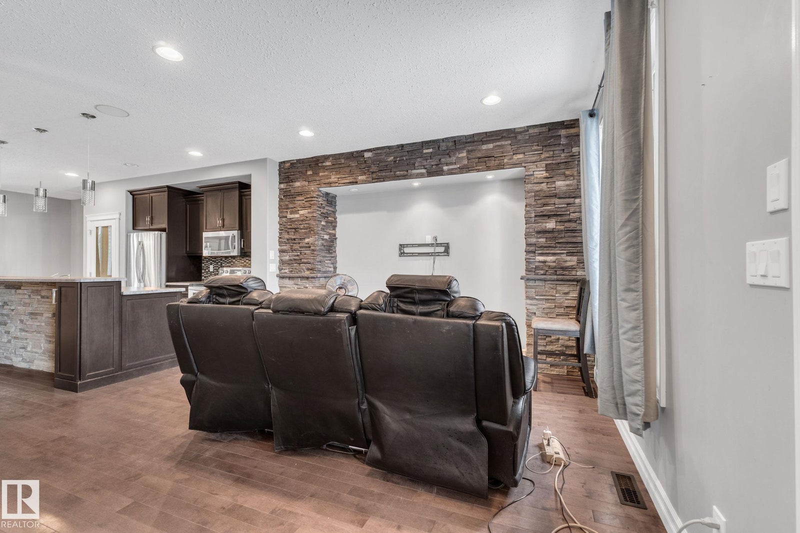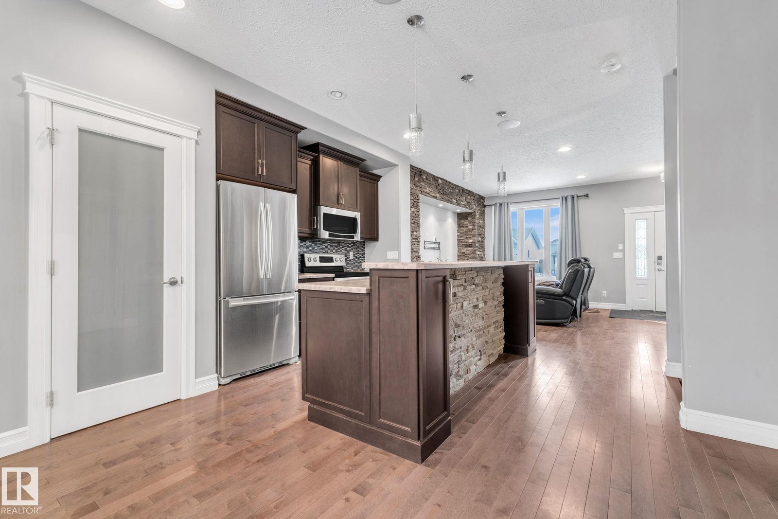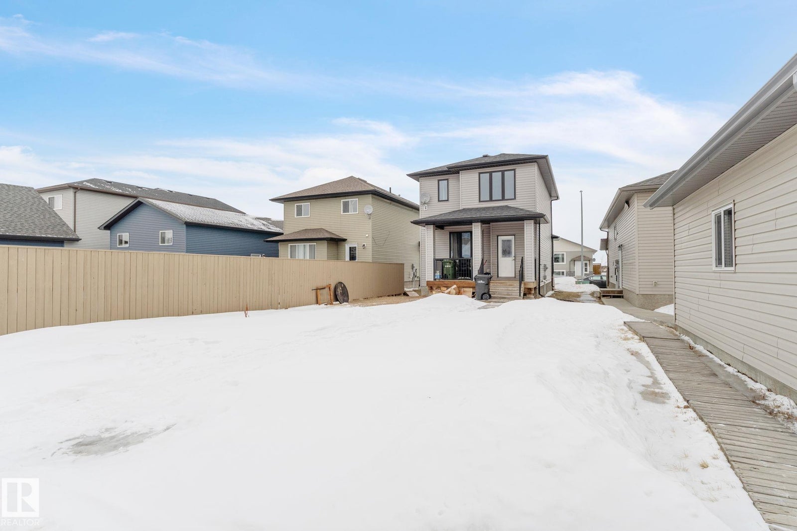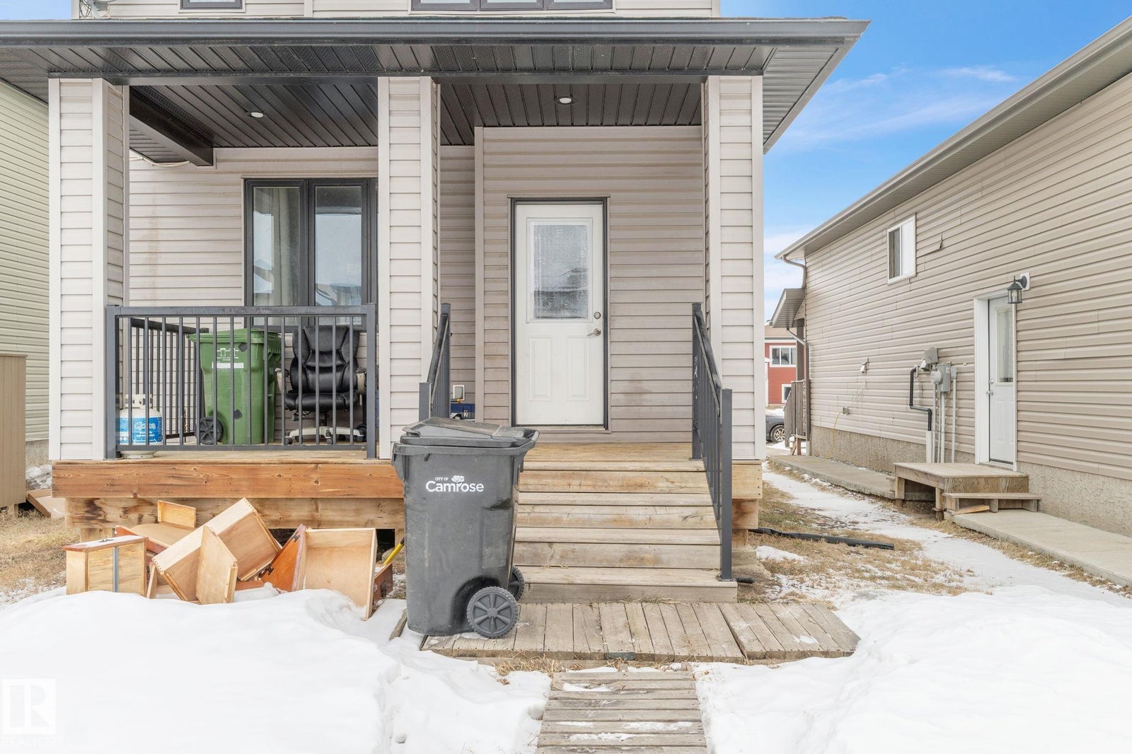 Welcome home to this beautifully upgraded 2-storey in Camrose, where thoughtful design meets everyday comfort. Step inside to a bright, open-concept main floor featuring rich hardwood flooring, built-in speakers, and a stunning stone feature wall that sets the tone for cozy nights and effortless entertaining. The chef’s kitchen anchors the space with sleek dark cabinetry, stainless steel appliances, and an inviting island perfect for morning coffee or hosting friends. Upstairs, you’ll find two spacious bedrooms, each offering its own private ensuite and walk-in closet—an ideal setup for privacy, guests, or shared living. With 1,443 sq ft of warm, modern living space, every inch feels functional and intentional. The unfinished basement provides excellent future potential, including the option for a separate entrance or suite. Outside, enjoy the covered deck, parking pad, ample street parking, and an unbeatable location just steps from the dog park, Camrose Golf Course and minutes from shops and amenities.