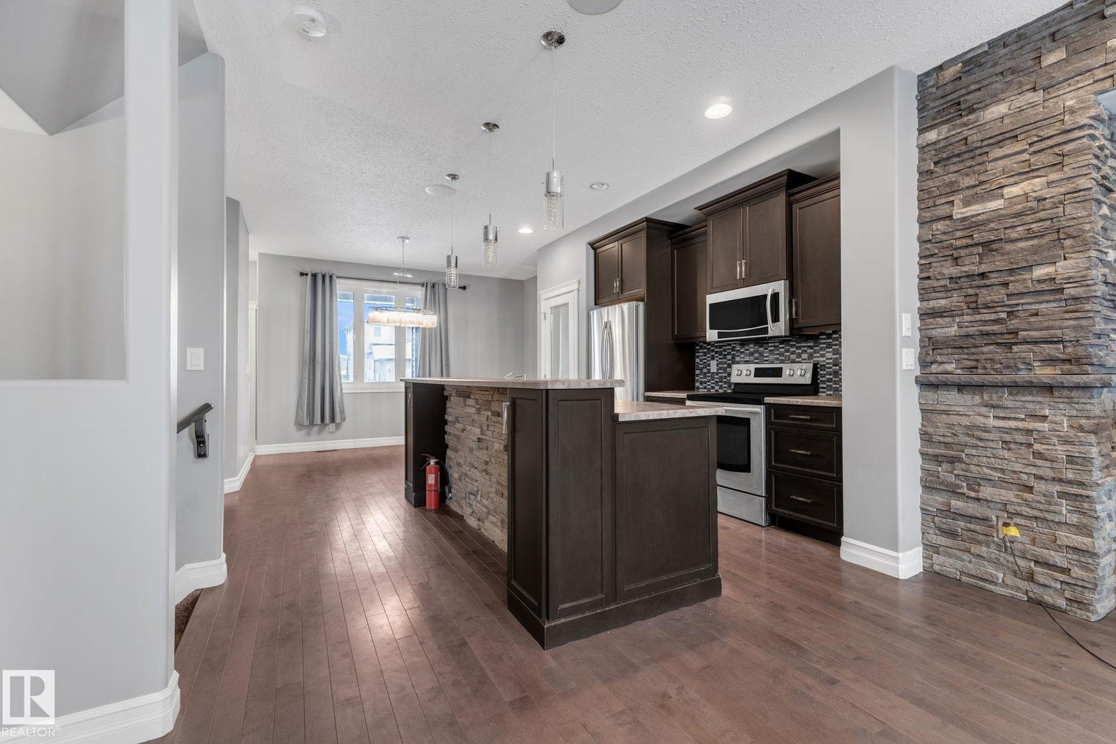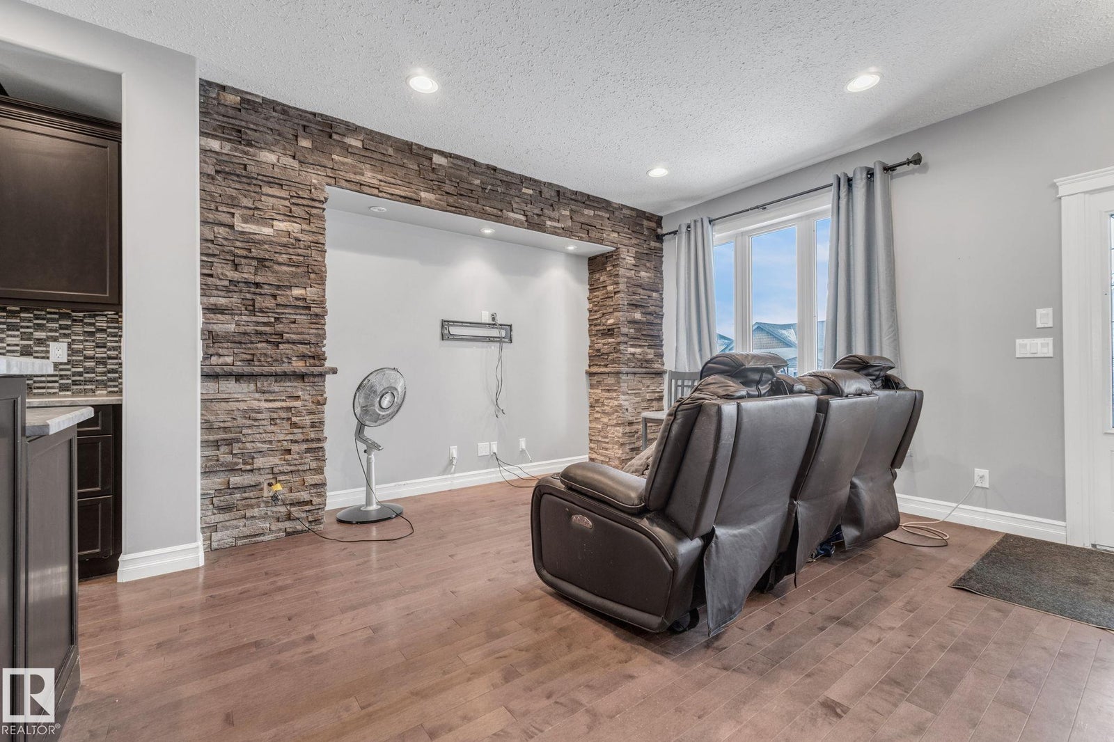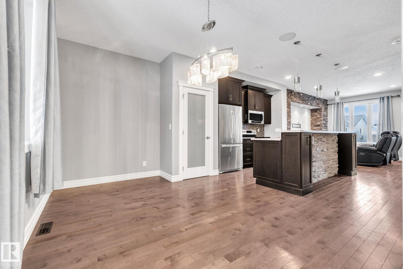 Welcome home to this beautifully upgraded 2-storey in Camrose, where thoughtful design meets everyday comfort. Step inside to a bright, open-concept main floor featuring rich hardwood flooring, built-in speakers, and a stunning stone feature wall that sets the tone for cozy nights and effortless entertaining. The chef’s kitchen anchors the space with sleek dark cabinetry, stainless steel appliances, and an inviting island perfect for morning coffee or hosting friends. Upstairs, you’ll find two spacious bedrooms, each offering its own private ensuite and walk-in closet—an ideal setup for privacy, guests, or shared living. With 1,443 sq ft of warm, modern living space, every inch feels functional and intentional. The unfinished basement provides excellent future potential, including the option for a separate entrance or suite. Outside, enjoy the covered deck, parking pad, ample street parking, and an unbeatable location just steps from the dog park, Camrose Golf Course and minutes from shops and amenities.