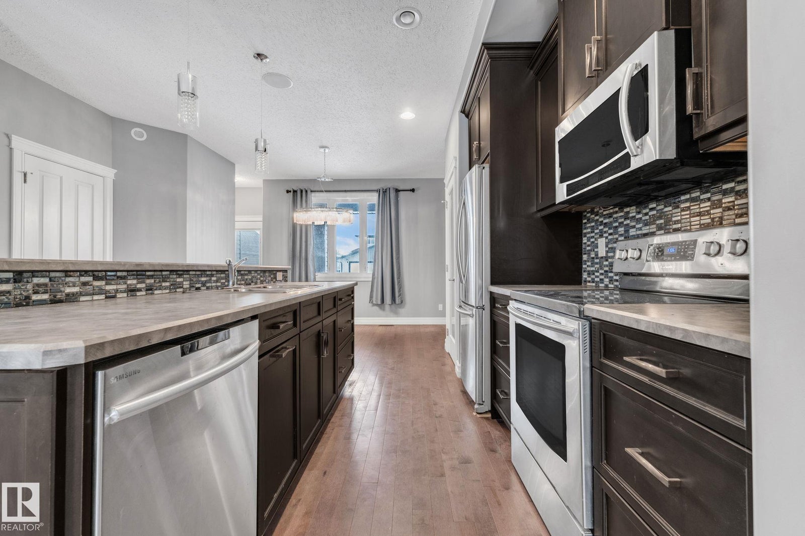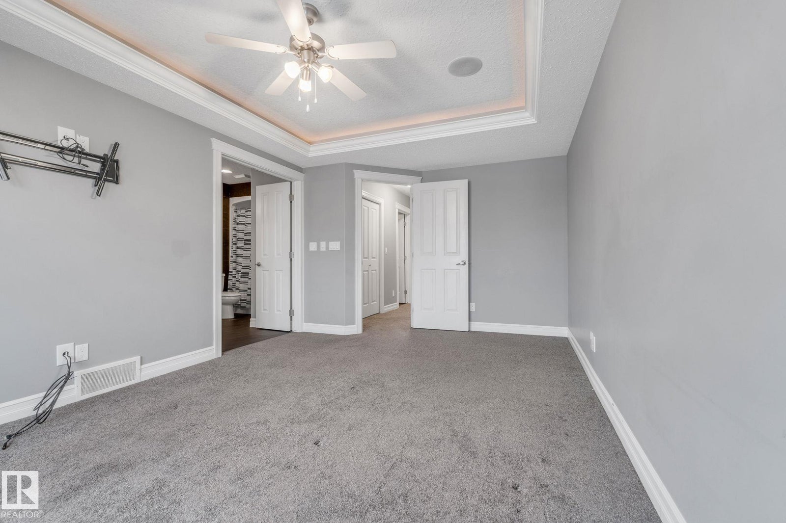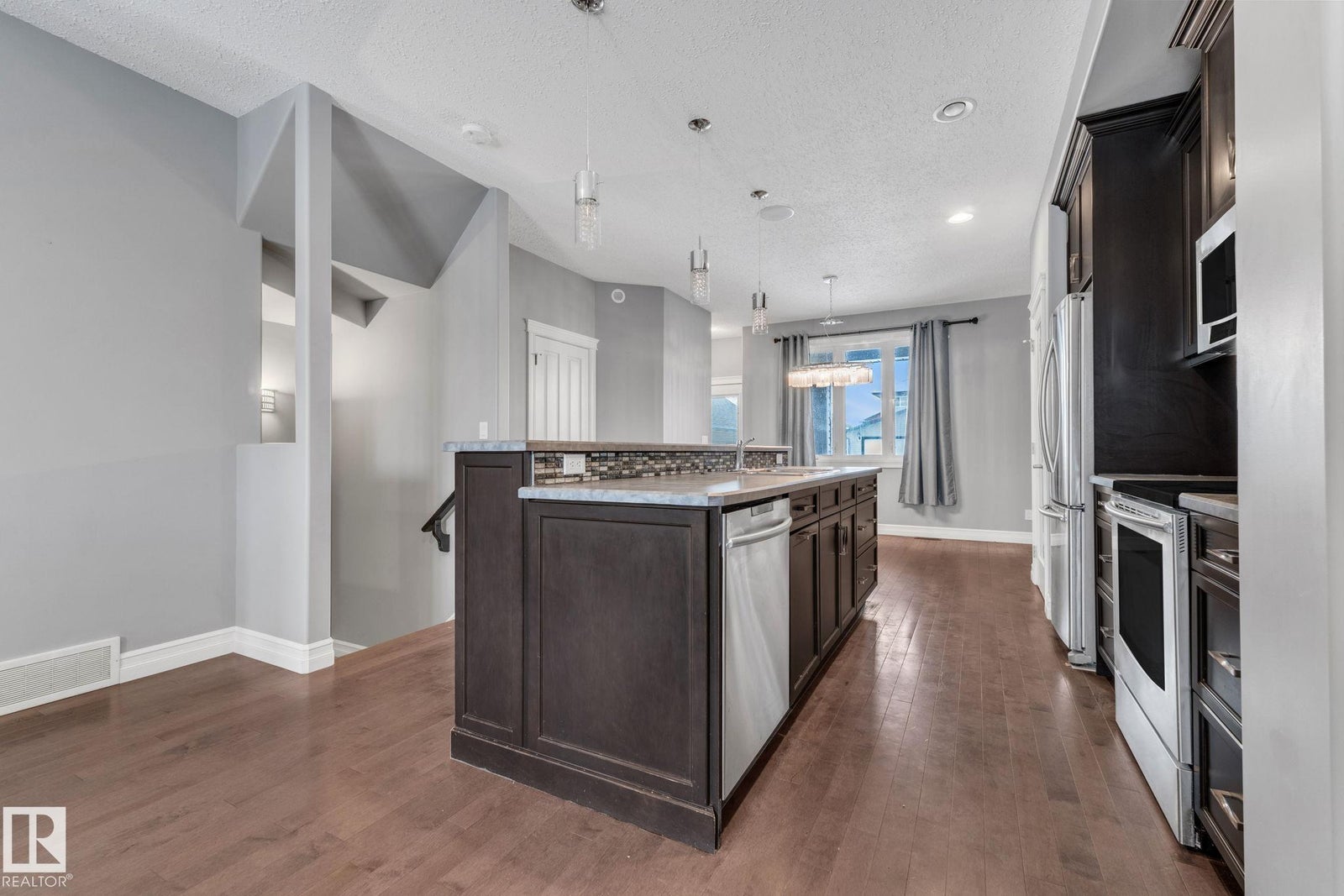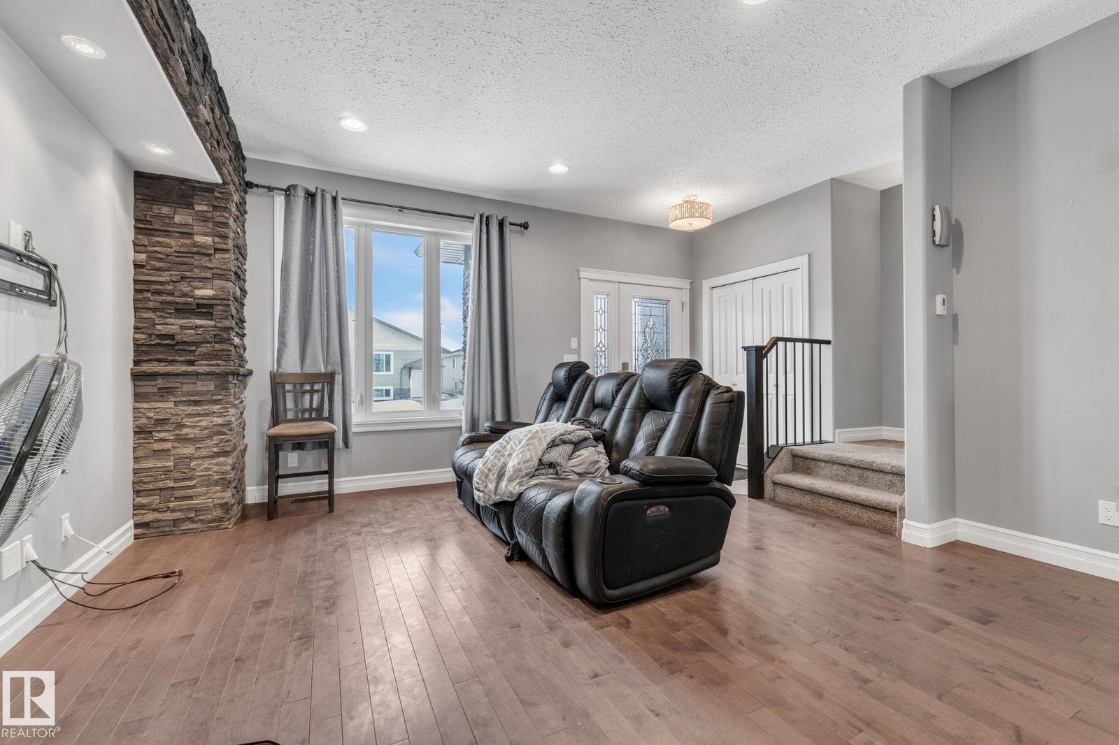Welcome home to this beautifully upgraded 2-storey in Camrose, where thoughtful design meets everyday comfort. Step inside to a bright, open-concept main floor featuring rich hardwood flooring, built-in speakers, and a stunning stone feature wall that sets the tone for cozy nights and effortless entertaining. The chef’s kitchen anchors the space with sleek dark cabinetry, stainless steel appliances, and an inviting island perfect for morning coffee or hosting friends. Upstairs, you’ll find two spacious bedrooms, each offering its own private ensuite and walk-in closet—an ideal setup for privacy, guests, or shared living. With 1,443 sq ft of warm, modern living space, every inch feels functional and intentional. The unfinished basement provides excellent future potential, including the option for a separate entrance or suite. Outside, enjoy the covered deck, parking pad, ample street parking, and an unbeatable location just steps from the dog park, Camrose Golf Course and minutes from shops and amenities.